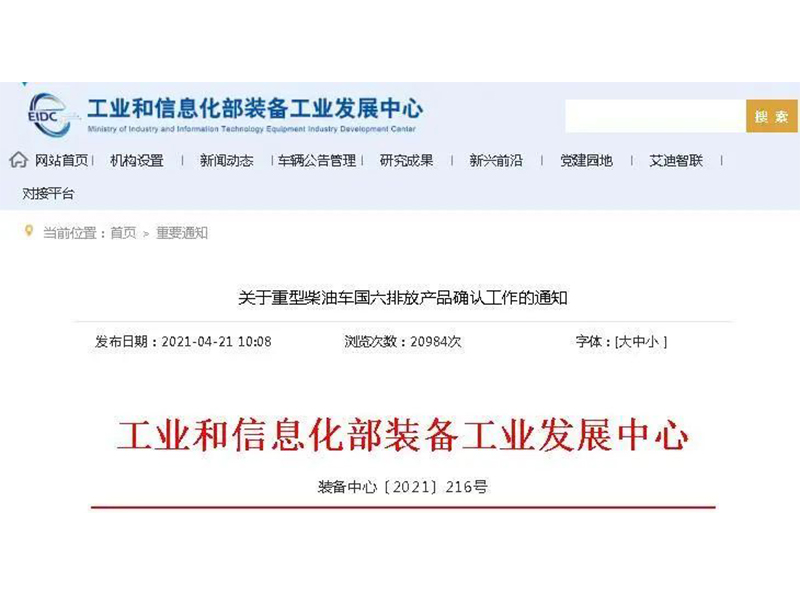 4月21日,工信部裝備工業發展中心發布《關于重型柴油車國六排放產品確認工作的通知》,要求自2021年7月1日起,停止生產、銷售不符合國六標準要求的重型柴油車產品。4月26日,生態環境部等三部門發布《關于實施重型柴油車國六排放標準有關事宜的公告》,明確自2021年7月1日起,全國范圍全面實施重型柴油車國六排放標準,禁止生產、銷售不符合國六排放標準的重型柴油車(生產日期以機動車合格證上傳日期為準,銷售日期以機動車銷售發票日期為準),進口重型柴油車應符合國六排放標準(進口日期以貨物進口證明書簽注運抵日期為準)。5月20日,市場監管總局聯合生態環境部發布《機動車排放召回管理規定》,為國六排放政策的“*嚴”程度再加碼,7月1日起排放不合規車輛,車企應立即召回。*新消息顯示,6月1日,生態環境部機動車排污監控中心還發布了《關于重型柴油車排放標準切換及關閉相關系統的通知》,自2021年7月1日零時起,機動車和非道路移動機械環保信息公開系統將關閉國五排放階段重型柴油車(機)型信息公開功能。這些文件的發布,為重型柴油車國六實施提供政策基礎,并將促進新車市場國五柴油車時代的結束。
