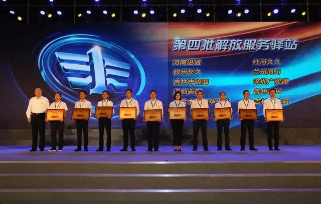 一汽解放汽車(chē)有限公司總經(jīng)理朱啟昕為10家服務(wù)驛站代表授牌